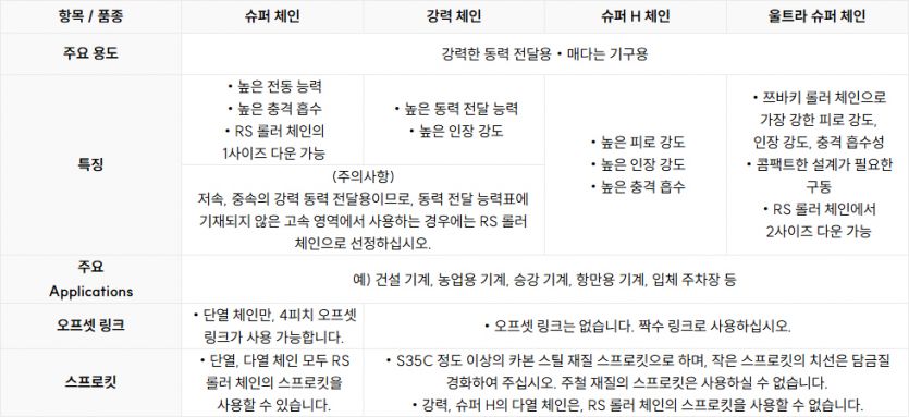 보다 큰 동력 전달 능력, 허용 장력, 인장 강도를 필요로 하는 용도